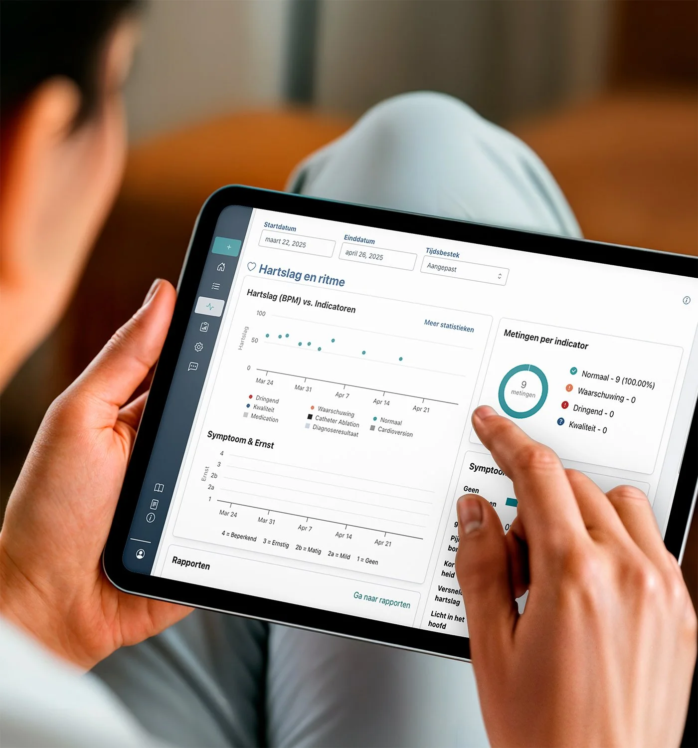 De FibriCheck-app wordt wereldwijd gebruikt om atriumfibrilleren en andere hartritmestoornissen op te sporen en op te volgen. Door de integratie in Patient Journey App worden de metingen die de patiënt doet in één platform inzichtelijk vanuit het EPD. Dit verlaagt de drempel voor gebruik en vergroot de betrokkenheid.
